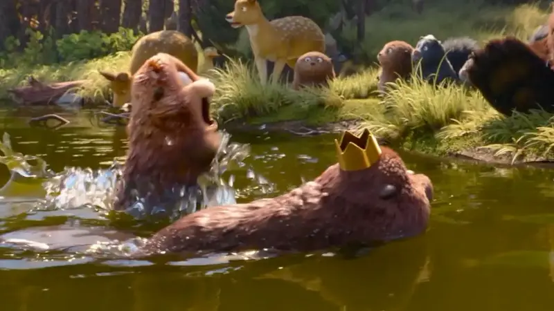 Among numerous things, Pixar movies are known for their humor, and yet I couldn't have been prepared for just how dark one recurring bit was in Hoppers. I'm about to talk about one particular "Pond Rule" explained and demonstrated in the new 2026 movie, and I need to get into some spoilers in order to discuss it, so if you haven't seen Hoppers, you may want to scamper off. Come back once you've seen it! (And I do recommend you see it. It definitely deserves the praise from critics, a strong opening weekend box office, and a spot among the top 10 Pixar movies.) Ok, so, not long after Mabel (Piper Curda) takes over the body of a robot beaver and starts interacting with the local wildlife, she comes to the aid of Loaf (Eduardo Franco), a beaver she's trying to recruit to help save the glade, but in this moment, is about to be lunch to a brown bear named Ellen (Melissa Villaseñor). When Mabel tries to rescue her new Beaver pal from certain death, both Ellen and Loaf are completely put off by the fact that this newcomer would dare interfere. Pond Rule #2, as Mabel soon learns, is "When you gotta eat, eat," and by intervening, she's committed an egregious pond faux pas, which leads to Mabel having to see the King. You can watch the clip below where King George (Bobby Moynihan) further explains the Pond Rules to Mabel, and both the first and second are demonstrated to her almost right away: