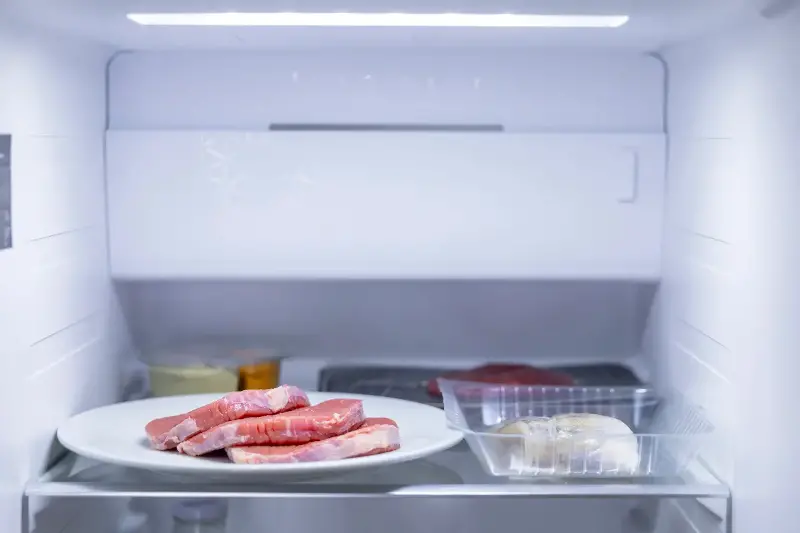 Otro hábito de riesgo es volver a refrigerar carne que ya ha sido descongelada a temperatura ambiente. Esto puede suponer un verdadero peligro porque las bacterias que empezaron a multiplicarse durante el tiempo que la carne estuvo fuera de la nevera pueden sobrevivir y continuar proliferando aun estando de nuevo en frío.