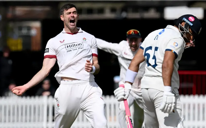 A stunning spell from the peerless, ageless James Anderson propelled Lancashire to an unlikely first win of the season and the 43-year-old to the top of the County Championship wicket-taking table.